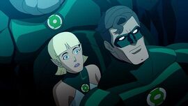 Arisia Rrab的部分贯穿全片,故事明显完全不考虑Arisia的人设,她实际上出生于绿灯世家,并不该像片中那样茫然无措。两部电影对于她的进团时间也互相矛盾,首次飞行中先于Hal,本片则晚于Hal。更多与本片无关的内容:Arisia其实是个十来岁的小姑娘,因为喜欢Hal,用绿灯力量“催熟”自己;当时Hal心有所属,Arisia为了吸引Hal注意力就把衣服改得特别性感(比片中露得多);后来和Hal在一起了。。。。又分开了。