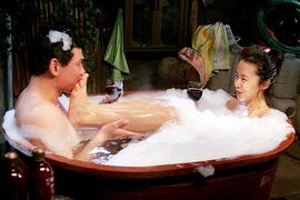 这部片子就是一部三情片。言情和煽情自不必说,韩国电影多数具有这两个特征,而苦情不多见。其他的爱情片里面,横亘在男女主角之间的障碍一般是门第的差距、家人的误解或者疾病(多数为失忆),只能叫做煽情,而谈不上苦情。这部片子里的爱情实在是很苦,男主角追求女主角就称得上是苦苦追求,后来好不容易在一起了,过上了幸福的小日子,却又被女主角混乱的过去所困扰。先是女主角的前夫找上门来跟着裹乱,这还只是小麻烦,可以用钱搞定,而接下来是女主角被发现HIV呈阳性,也就是携带有AIDS病毒,还因为带病期间卖淫被定了传播性疾病、危害社会的罪名。这个问题就大了,AIDS跟失忆不同,它不仅仅是疾病,更是社会问题,男主角对于女主角的爱受到了来自家庭和社会的巨大压力。这就是苦情了。最后,女主角被判了刑,男主角自杀未遂失了声,不过女主角出狱后两个人终于在一起了。影片的最后一个镜头是两个人坐在车上甜蜜地笑。