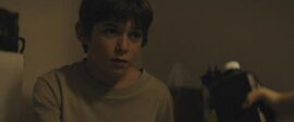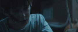 这个传送者,看到地下室的物品,突然像是在回忆什么。(当然我们知道他是被洗脑的Jacob,所以看到以前自己的玩具和制作的东西回忆起了一些记忆,不过仍然很混乱)之后女主为保护孩子冲上去搏斗,被刺中要害倒地。孩子的Jacob也冲上去,被划伤了脸颊。然后女主看到传送者的脸上也突然凭空出现了诡异的一条伤疤,和自己儿子脸上的位置一模一样。女主瞬间明白了这个传送的人正是40年后的Jacob,自己长大了的儿子。