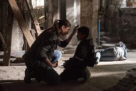 中途,死过一个年纪最小的孩子,他死之前摸着肚子上的血,不知道会发生什么,也不觉得痛苦,抱着他的小老虎布偶,毫无恐惧。引人深思恐怖主义的残暴冷血。