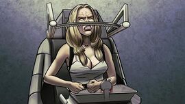 3.针对C女儿的处刑方式是将女儿困在安装电锯的椅子上,要求女儿割腕,每分钟把10ml血液流进椅子前的秤上,否则就会被电锯隔断脖子。