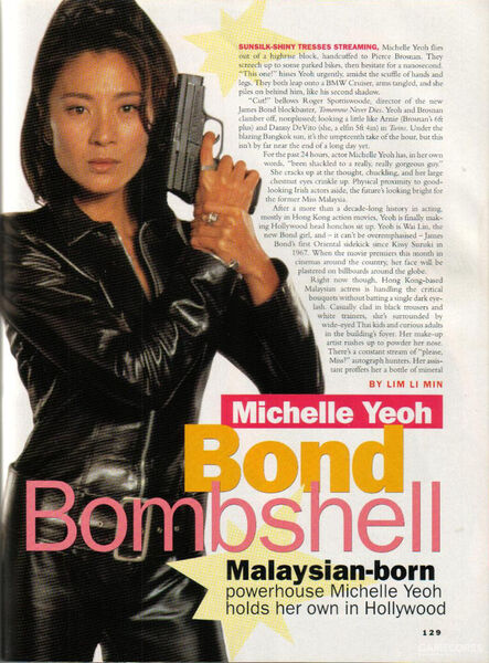 罕见正面描写中国的007《黄金眼》的游戏发售于1997年五月,同年十二月,布鲁斯南的第二部007《明日帝国》开始上映。 不管从哪个角度看,《明日帝国》都不是一部难看的电影,更何况它还是唯一有华裔担当邦女郎的电影。华人女星杨紫琼的加入不知是否受到了成龙的影响。1994年,《红番区》让成龙终于打入好莱坞,也让美国观众真正领略了异于欧美动作片的香港武打的魅力。杨紫琼的当选是否有此因素呢?