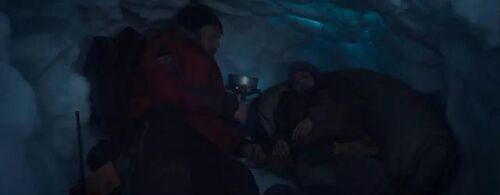 男子利用直升机上的急救包止住了血,带她回到自己的机舱。女子意识模糊,但一息尚存。依靠直升机上的部分设备,男子提高了他们生存的概率,能够吃上热食,并且有了火源。