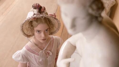 为了还原Emma自身以及她所在阶级的瑕疵,《爱玛.》毫不掩饰地展露出Emma作为所谓上等人的自负和短视。影片的开篇就刻意选择了一个原著中没有的场景,Emma带着佣人们在花圃中剪花,颇为骄纵地下着不客气的指令。Emma固然是可爱而糊涂的,为朋友寻姻缘也部分出于善良和关心,但新版的剧作和演员Anya Taylor-Joy那张既刻薄又娇憨的美丽脸庞,都在强调Emma那些经常被过度美化了的另一面,她的自私、略显愚蠢的沾沾自喜,和她对比自己地位低的人不自觉的鄙夷。
