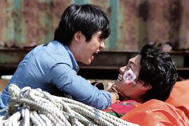 这时,犯罪团队的头目又打绑了一个女子去了黑山岛(可能是这个名字)。姜刑警、记者加上女子的妹妹三人一同前往救人。在这个过程中,姜刑警最后在海上杀掉了犯罪团伙的头目,于是正义战胜了邪恶!女子也被救了回来。同时也给后辈刑警挽回了名誉。