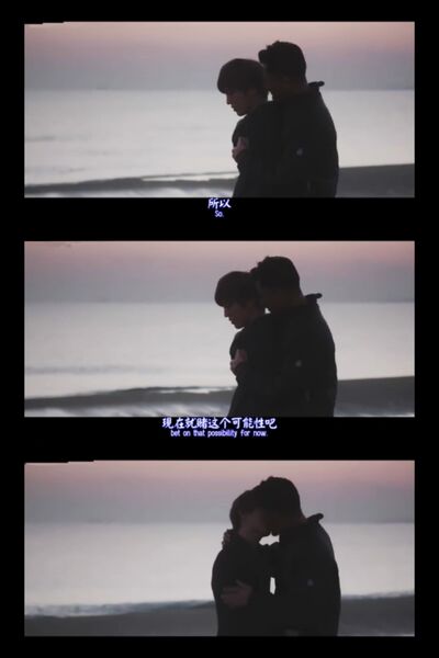 我认为小受这个角色其实很现实,我经常有一种他就是我的错觉,因为我跟他很像。他和叔攻在一起的时候并没有表白,而是在他与叔攻都交流过了自己内心的痛楚后,小受在叔攻的怀里,互相凝望着,在那一刻,可能是人的心真的相通了,或者是气氛真的到了,他们亲吻了。我和我现在的男朋友也是一样,在那一天我也依偎着他,那一刻似乎我和他的心真的相通了,他吻了我(他不是gay),现在我们也在一起了❤。