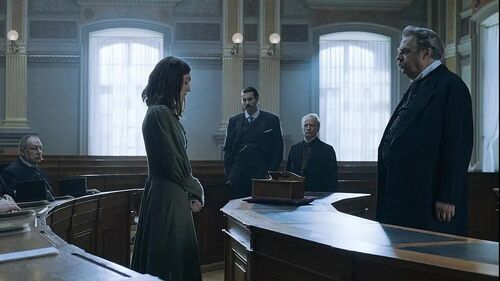 最后,是那些制定法律的人,影片最后一幕很有意思,所有的大议员聚集在一起为弗里达的案子投票,检控官、律师也都在场,这些人,全部都是男性,只有弗里达一个女性,在他们中间显得讽刺又突兀。
