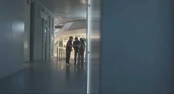 调度最复杂、也是最令观众印象深刻的一场戏,就是李琪和小汤矛盾激化的一段伪长镜头。冲突不断升级的同时,导演在光影上也做了动态的处理。小汤递交辞职信的地方是剪彩仪式的现场,这里空间相对开阔,打光也比较高调,但背景的红毯就暗示了二人在前几场戏埋下的矛盾将要集中爆发。随后小汤离开会场,李琪追了出去,走廊的空间收窄,亮度下降(但依然有玻璃透光,相较下面的场景还算明亮),二人矛盾激化,并在等电梯的时候彻底摊牌。电梯间门口一般会有一小块和走廊连接的相对独立的空间,导演充分利用过渡空间正反两拍:先是摄影机背光,演员侧面面光,而盟友的攻击“张小蕊的助学金也是启航基金给的”让镜头转向面光,此时人物只有剪影。进入电梯间内部这一狭窄逼仄的、无自然光源的空间(电梯的顶光和木板上的红字强化了不安的氛围),则象征矛盾进一步激化——由原来“论点上的反驳”转为“道德上的叩问”,最终升级到关于价值观的辩论,彻底分道扬镳。在这个过程中,电梯一路从32楼降到地下2层,小汤几次三番劝告李律师,游走在阴冷的停车场和电梯空间之间,而李律师自始至终就没下过电梯,也暗喻了二人此刻截然不同的社会地位:一个法考都没过,离开律所只能回到路边摊背题;另一个还会坐电梯,回到社会高位,享受名利双收的精英生活。这一段伪长镜头调度,从“天上”到“地下”,从“光明正大”到“暗无天日”,是全片的一大华彩段落。