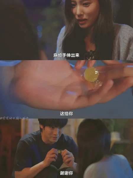 女主不小心把纸团丢向了男主,于是送了颗糖给男主,男主就请女主到店里吃饭团