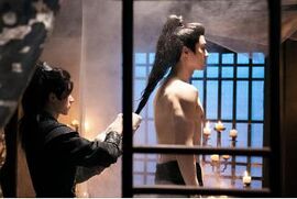 这剧我是无意中入坑的,看到腾讯视频开播就点进去,目前才播到第九集。但没想到看着看着我就上头了!对,可耻地上头了!剧情的话,就是武林黑道霸主赤影山庄少主褚景辰和复仇少女阿沐之间跨越血海深仇的一波三折,完成度可以。但这剧最厉害的一点是:看到现在,好嗑的cp已经出来N对了!而且这些cp 颜值还都特别高!而且……怎么说,你们懂的,其中还藏着大大的不可言说的福利,我是土狗我好爱!嗑cp的快乐必须分享,独乐乐不如众乐乐!第一对:男主褚景辰和护卫长阿念的cp。我已经多久没在第一集出场几分钟内就看到这样美好的镜头了!深更半夜,水雾袅袅,一个帅哥在默默地给另一个帅哥擦背!啊快鲨了我给他们助助兴!