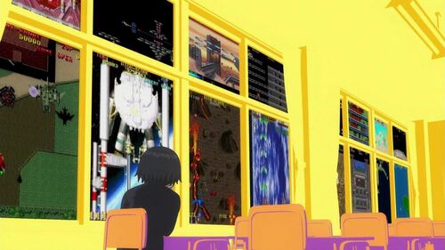 这一集毫无疑问是SEGA和TAITO的主场,登场的两款主要的游戏,一为SEGA的《VR战士2》(最开始两个女主用SS对战的游戏),一为TAITO的《王者之拳》 (矢口在小混混面前玩的游戏)。除此之外,两个厂商做的其他很多游戏在这集也有很多上镜的。末尾的不良少女与老头子对打的那场戏,也是在模仿《VR战士》,尤其是老头子“出界”那一幕。(因为《VR战士》有出界的判定,一旦一方出界,即使有剩余血量也会直接判负) 除此之外,矢口的那句“喜欢《龙凤神偷》和《泡泡龙2》的人没有坏人”也很值得玩味。因为这句话提到的两款游戏,刚好一个来自SEGA(《龙凤神偷》),一个来自TAITO(《泡泡龙2》)。