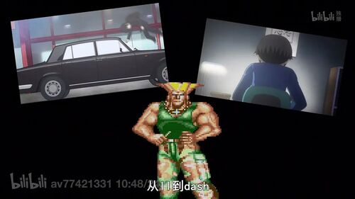 这一集,两位女主对战的游戏为《超级街头霸王2》,最开始她们都想选择一位名叫“豪鬼”的角色,却都错选成了隆。这是因为豪鬼在这款游戏里是一个隐藏角色,不能直接选择,需要在选角色界面达成一定条件才能选择(我在一期的长评里说过这个):