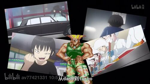 而连接着两个时代的唯一节点,同时也是复兴街机游戏的重要因素,便是整部作品中上镜率最高的游戏——《街头霸王2》,也正因为如此,两期OP都不约而同的把重点放在了这款游戏上。