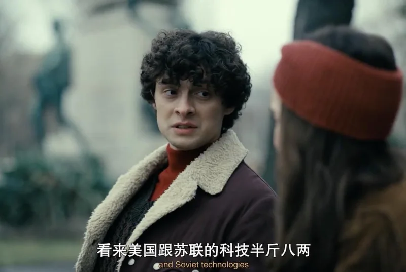 另外,整部剧从开场到结束都设定了很多喜剧情节,在剧情、台词中融入很多对美国、苏联的调侃与嘲讽,完美协调了悬疑惊悚恐怖的冷战谍战氛围与罗曼蒂克爱情故事之间的割裂感。
