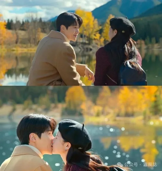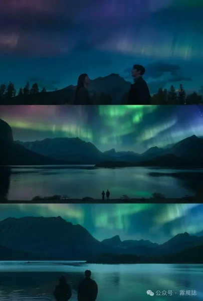 摄影上格外亮眼的部分,是跨越日韩、加拿大、意大利的海外实地取景,这些场景主要为主角浪漫爱情主线服务,尤其室外景的部分,大多运用远景为空间和情绪注入呼吸感,空间开阔、观感舒适,明亮且高饱和的色彩增添了不少华丽感,还有绝美的极光加持,根本不需复杂的调度,美景配上这对高颜值cp画面已然自成一景。