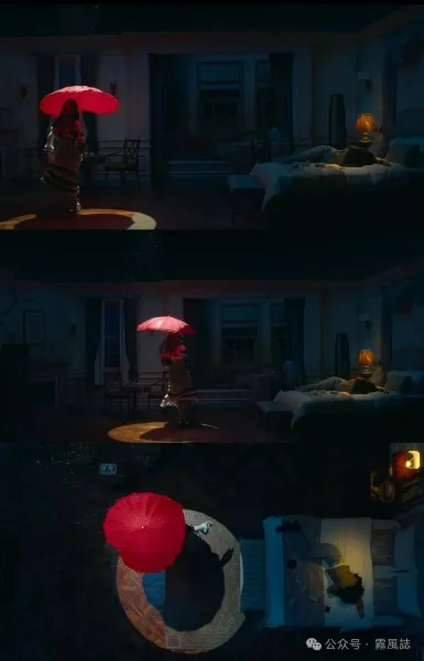 属于都拉美的那些怪诞奇异,光怪陆离的镜头,我认为更能真正体现导演功力。例如都拉美和车茂熙共处的画面,车茂熙趴在床上哭、都拉美拿着一把心形红伞在旁边跳舞,仿佛在嘲弄车茂熙的伤心。一束光如同舞台效果,用非常戏剧化的方式表现车茂熙和都拉美的共存与矛盾,使画面呈现出一种诡异却新鲜的美感。