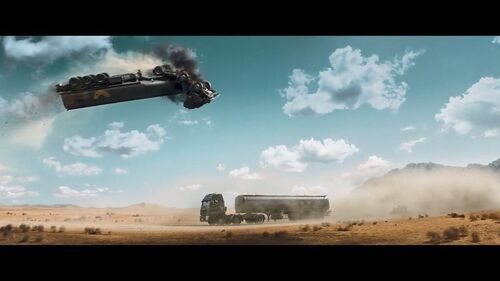 这部电影里也搞出喷射卡车的飙车,算是导演舒适区了,只不过科幻指数直逼“速激”。