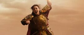 在网络电影中算是一部不错的影片了,战争、武打、爱情、家国情怀等元素都有了,看的还是过瘾的。信仰的力量是非常大的,国王与将军利用了这一点,编出了一个天命玄女的故事,希望玄女护商,万世永传。而事实上正是如此,哪怕是编出来的,相信的人多了,信仰的力量就显示出来了。女主自以为是玄女,以护商为己任。当溃败的商军战士看到玄女归来时,立即转身,有了杀到敌的勇气。那个假玄女演的还是可以的,胆小、自私、无用,利用父亲的地位欺压王子,这样更加突出了真玄女的英勇善战、护国有功和对王子温柔善良的一面。值得一提的是有一个剧情,决战到最后,女主打败外族首领之后并没有杀了他,说了一句“如果你们是带着美食、美酒过来的我们随时欢迎,若再敢来犯,定会死在这里”。这个剧情与想像中有点不一样,常理是应该杀了外族首领啊。其实不杀可能更能显示出我们大国的风范,立马让人联想到中国一直以来对外的态度,就是“朋友来了有好酒,财狼来了有猎枪”这句话。