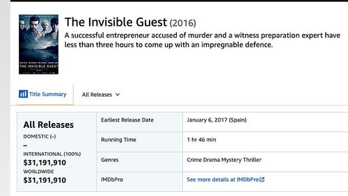 《看不见的客人》仅仅只有3100万的制作成本,在我国都属于小投资的电影,版权价格可能不会超过百万欧元。