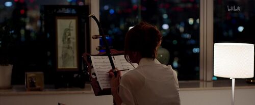 音乐最上回到家中时妻子所拉的二胡曲与影片开头的音乐相同,乐谱上端有注明曲名《Punishing Sheet of Rain》。