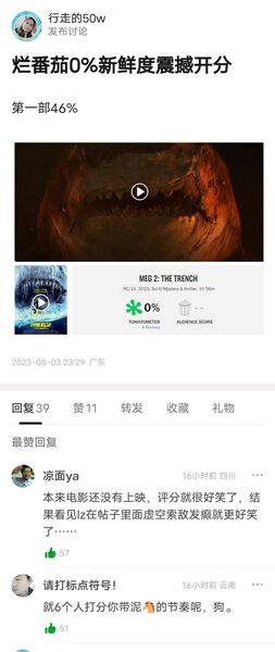 最后有些人也不用骂我是水军是黑子,这片我看之前有人这么带节奏,我都想骂他,我也以为他是黑子是水军,我把骂他的都点了赞…