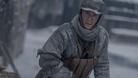 伍千里是电视剧《冰雪尖刀连》中七连代理指导员,一位身经百战的钢铁战士。他眉宇间透着军人的坚毅,面对敌人的炮火毫不退缩,用血肉之躯筑起钢铁防线。在零下四十度的冰天雪地中,他带领战士们以尖刀连的锋芒刺破敌军防线,用生命诠释着人在阵地在的誓言。这位身先士卒的指挥官,以铁血柔情凝聚战友情谊,用不屈意志书写英雄传奇。