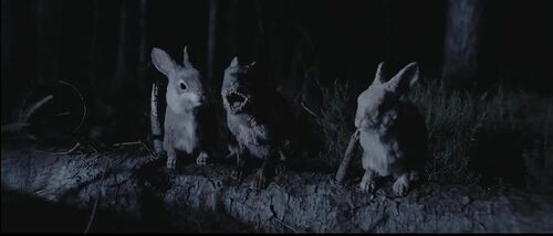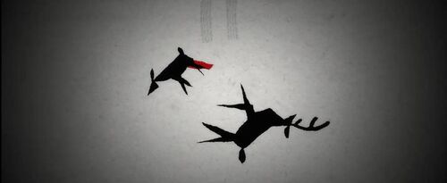 整部影片就是一头黑化变异的暴恐巨鹿,疯狂追杀一组傻大胆又神经兮兮的家庭成员。开头用了三分半钟的剪影动画,来回味经典童话《小鹿斑比》以及被追猎、被残害的黑化背景。