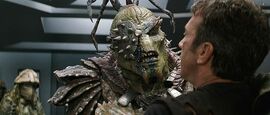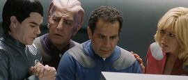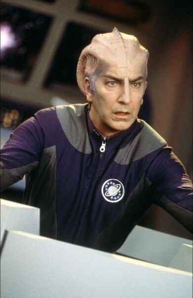 片中Galaxy Quest是一部被cancel18年的科幻剧,在一次fan大会上,剧集的主要演员们重新碰到一起,除了演commander的Jason,其他人内心对这部剧和当年的经历已经没有什么感情了,有的还提都不想提。他们没想到的是一群叫Thermians的外星人把剧集当真,按照里面的设定和情节建设了自己的星球,将剧集视为崇高的历史资料。此刻他们遭到以一个名为Sarris的邪恶外星人为首的势力的威胁,于是来向Galaxy Quest的“crew”们求助,从此主要演员5人加上一名龙套演员开始了一次真正的太空旅程。片子从头到尾都源源不断的蹦出绝妙的台词,超级好玩,每个船员 演员本人的设定都是在恶搞传统的科幻冒险片的模式,Jason自满而不顾他人感受,陶醉于他人对自己的崇拜;演外星助手Dr. Lazarus的演员Alex怨恨这个角色毁掉了自己严肃演员的事业(He's British!),从头套到台词无一不令他深恶痛绝(他的招牌台词类似“替月行道”之类的,小朋友大概会很喜欢),对Jason的行为十分看不惯;唯一的女角Gwen演的是个典型的胸大无脑金发美女形象,干的是重复电脑的话这种没有技术含量的工作,最有趣的是当年的背景板演员Guy,老是担心自己会遭遇剧集里的命运,提前挂掉,紧张的叫妈妈,在他眼里处处是危险:I'm not even supposed to be here. I'm just "Crewman Number Six." I'm expendable. I'm the guy in the episode who dies to prove how serious the situation is. I've gotta get outta here.