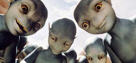 这部片的一大主题当然是恶搞Star trek为主的科幻剧及其相关的粉丝文化,试想电视剧里夸张理想化的情节放到现实中会怎么样,比如电视里正面人物受伤了一般都作坚韧状强忍痛苦,在片中受伤的船员则是杀猪似的哇哇乱叫。Jason独斗巨石怪物的场面据说是恶搞ST里某集的特定场面,Jason通过对讲机向船上的人求救问他该怎么办,里面的人按照电视剧情节提供了一堆不现实的方案,啥利用周围的东西组装武器什么的,Jason最后还不例外的像大部分恶斗过的英雄人物般撕衣服露上身,喷~~片中很多地方都在嘲讽电视的不现实,Jason和Gwen通过一个按照电视剧设计的危险通道后大骂:Whoever wrote this episode should die!Jason想当然的认为电视里自己一切都能搞定,现在他也能办到,事实证明他毕竟只是个演员,在Sarris的威逼下,他不得不心情复杂的向 Thermians的首领说清楚真相,承认自己说了慌。Never give up. Never surrender这话有时候讲起来很无力。但另一方面最后Jason在一个剧集死忠小粉丝和他的朋友们的帮助下,逆转局势,成功消灭了Sarris,正是靠了粉丝对剧集内容的了解,这么一写,又不是完全摒弃剧集的内容,很巧妙。片子里对粉丝的形象满正面的,无论是 Thermians也好,那几个小粉丝也好,都给人特纯特美好的感觉,和心灰意冷,缺乏朝气的演员们形成对比。Alex也是被他的一名Thermians 的忠实崇拜者的死打动,终于说了那句自己一直非常讨厌的台词。有些意思的是Thermians按照剧集建设了他们的星球,结果居然很成功,他们心思单纯正直,不知欺骗虚假为何物,不知道是不是要说电视里的世界很理想化,乌托邦化呢~~ 片子的另一个主题我想是寻找自身的价值和认同吧。Galaxy Quest的演员们自剧集停播后,再也没有找到别的像样的角色,被框在过去,因为很久以前的角色在现在被人想起,而不是最近的成就,这让演员们心情很差,就像一个人如果老是提起他在高中如何辉煌,那就说明他今后的发展多半是失败不值一提的。Jason从第一次飞船之行中重新发现了生活的兴奋点,促使他带着众人加入了这次真正的星际之行。经过这么一次折腾后回到地球,出现在粉丝们的欢呼声中时他们的感觉已经和之前不一样,真正体会到了作英雄是怎么回事,电视剧虽说有很多他们不喜欢的地方,但他们与之的联系促成了这次奇特的经历,并深切的体会到了这部他们原先厌烦的剧在有些人心中是如何的重要和珍视,演员和粉丝间的心情终于相同,变成了一个对等关系,Jason向小粉丝的手势不是出于炫耀,而是发自内心了。总的来说是部笑料十足,充满幽默智慧并不乏感动的好看喜剧,演员们表现也很出色,有多好玩看了才能体会。