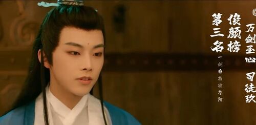 第三名,一剑白衣破冬阳,曾耀晖饰演的万剑圣心司徒玖。文质彬彬的帅,很秀气的男生。