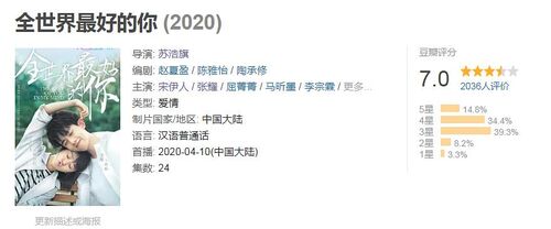 宋伊人、张耀主演的《全世界最好的你》由4月10日起首播,评分7.0,在国产青春剧中还算不错的评分。