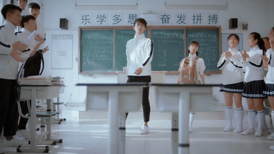 此时全班竟然都站起来,把自己的桌子搬开,给他们让场地。