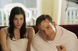说来好笑,在旁人觉得如此老套的中庸之作时,我却几乎到后面连嘴都合不上了,不知为何,觉得有一种暖胃的感觉,一直嘿嘿地笑。单身老爸和小大人女儿的电影不少见,前一阵子的《爱情三选一》(又叫什么《确定地可能》)就是,这部《泽西女孩》没有前者情节复杂,甚至剧情元素你可以从别的电影中随便抽出来,但是很显然这是一部睡前电影,不管有多老套,至少看完后,我可以心满意足的钻进被窝。