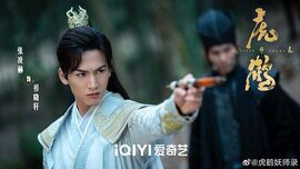 [王羽千]由[陈宥维]饰演。天赋异禀的虎鹤双灵体少年,身负上古妖师血脉却遭族人唾弃。手持可化为白鹤的玄铁长剑,以引灵术沟通人妖两界,在守护苍生与觉醒妖性间痛苦挣扎。表面是正道宗门的天才弟子,实则背负着灭族之仇的复仇者,其复杂身份与宿命纠葛成为串联正邪势力的关键纽带。