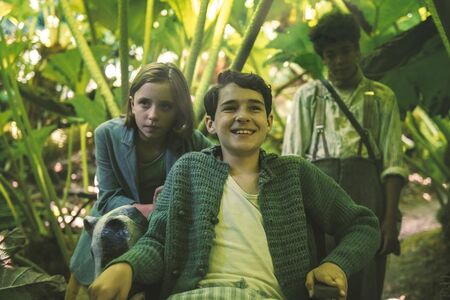 电影魔幻化的花园场景也非常不自然,不知为何做这种改编。电影开篇还给了荒原一个一片荒芜的镜头,转眼就镜头就变成了庄园里的林荫大道和热带雨林,也没有进行解释,如此怪诞的魔幻花园场景自然不需要一个老园丁打理,导致原作中混入孩子中的成年人—老园丁这个重要角色被拿掉。影片中的问题儿童是要随着他们耕耘的的花园复苏一起成长痊愈的,如果只是两个孩子偶然发现了自然之美而被感化,实际上秘密花园也就不再秘密。