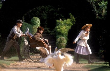 原著及前作时间设定在战前贵族家庭,地点设置在荒原是有原因的,那是一个技术和医疗都不发达的时代,所以会出现母亲摔死,女孩父母病死,男孩疑病不敢出门,一家人都情绪低落最后借自然之魔法痊愈的故事。电影改编到二战后,一个被士兵征用过还通电的房子里,男孩女孩小时候还见过面,显得整个电影故事继承于原著的神秘感也被削弱。