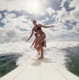 为了参加全美冲浪高手大奖赛,玛丽戴着妹妹派尼,和两位志同道合的挚友住在夏威夷的海边,每天练习冲浪,日子虽然清贫,但快乐,玛丽和两个朋友在一家五星级饭店做清洁工,她们每天开着破旧的汽车吵嚷着去做工赚钱贴补冲浪费用,偶尔也会试穿房间内客人乱丢的性感衣裙,被客人发现时一起遮掩手足无措。