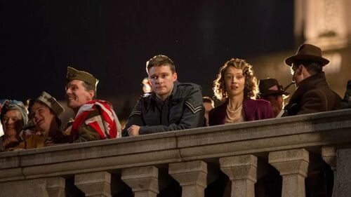《公主夜游记》是一则关于王室的八卦,主角是英国女王伊丽莎白二世,没错,就是那个大家都熟悉的,在宝座上多年仍然不肯退位的老太太。 但,谁没有个年少轻狂的过往?哪怕是女王也不能例外。1945年,二战胜利的那个夜晚,举国欢庆,伊丽莎白和妹妹得到父王的允许,微服出游去与民同乐。根据官方记录,两位公主在午夜前就回到了白金汉宫,电影则在此基础上做了大胆的假设:也许,公主整夜未归,这记录是假的,只为了掩饰那一晚真正发生的故事? 为了陪衬姐姐,二公主玛格丽特被塑造成一个只会吃吃娇笑的傻白甜,她这一晚过的多姿多彩,喝了太多的酒,跳了太多的舞,经历了太多的男人,最后还毫发无伤地安然回家,把一个烂摊子丢给了自己的姐姐。 责任越大,压力越大,伊丽莎白就无法象妹妹那样,放下身段去寻欢作乐。大部分的时间,她都在焦灼不安地寻找走散了的玛格丽特。