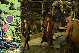 电影中Ego的身份是天神组之一,但在漫画里并没有沿用这个设定。实际上在第一部电影里大家已经看到过天神组了,第一个出现的天神是一颗脑袋,也是银护一行人逃出监狱后的目的地Knowhere星。