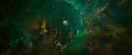 火箭浣熊的飞船还经过了另外一个星球,两个克鲁南战士(Kronan)正在上面打斗。克鲁南人曾在《雷神2》开头登场,但很快就被雷神的一记重锤轰成了碎渣。另外《雷神3》中将会有著名的克鲁南人Korg出现,并由该片导演泰卡·怀蒂蒂客串出演。