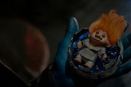 在勇度火葬前,他的遗体旁放满了各种可爱的小玩具,其中就有一只魔性的长发精灵。如果你还记得的话,这是银护1中星爵用来向勇度“交换”无限宝石的道具。