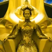 第三个彩蛋:索维林女祭司阿耶莎因浪费国家资源而受到议会指控,为了报复银河护卫队,她制造了一个金色大杀器,并为它取名“亚当”。这无疑意味着魔士亚当(Adam Warlock,又称Him)即将在银护3中登场。