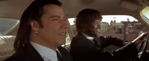 尼克·弗瑞这边也没闲着,他cos了一把《低俗小说》,