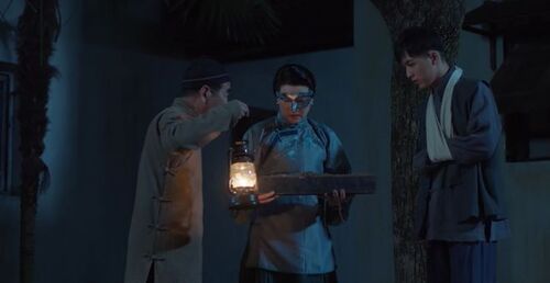 柳芳其实是假死,受到王副官(徐一泷 饰)蛊惑,说想跟柳芳联手拿到两幅画轴合成图纸。