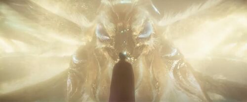魔斯拉,扑棱蛾神,昔日与刚总结缘,抗击宇宙怪兽中殉道。前集宇宙怪兽战败复苏,此集因节省成本,决定复用魔斯拉建模,由此展开蛾神复生之戏。