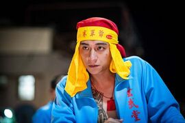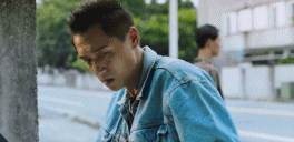 前半段,他是嚣张的混混,耷拉着脑袋,斜着眼手保护费。散漫的样子很恰当。