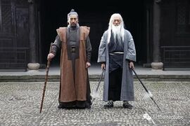 《箭士柳白猿》 (2012) 在我们合作之前,于老只要一有影视作品就会表演双手剑,所以后来在《倭寇的踪迹》的时候,他就拒绝再表演双手剑,他跟我说“其实导演,我是形意拳发力”。于老为什么通形意拳呢?他的本家师父是螳螂门的,但是后来他自己追求实战,然后就等于拜了一个民国时候的山东国术馆的师傅,而那个时候北方的国术馆肯定是以形意拳为主的,所以他才会说是形意拳的发劲。他说这个东西是别人没见过的,然后我想在您电影里留下来。我说那太好了,您能这样。所以就有了《倭寇的踪迹》里的合作。