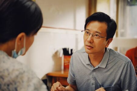 《又是充满希望的一天》剧照(因为影片的拍摄背景是疫情期间,片中演员大量表演都是在戴着口罩的情况下进行的,很多时候只有眼睛能够提供表演,在谈及眼神的表演时,刘泰风导演用片中饰演徐晓霞的郭柯宇做了例子)表演最重要的一个东西就是眼神,这也是人之所以区别于动物的一个关键点,我们为什么要有眼白?大多数动物之所以没有眼白,那是一种伪装。而人类社会的运作法则不是这样的,因为人会说谎,眼神是很难说谎的。郭老师(郭柯宇)的眼睛是非常传神的。在她15岁的时候演了一部戏叫《红樱桃》,里面有一个她用稚嫩童声说的独白,整场戏眼睛一点都没有眨,然后眼泪从眼睛里面流出来,那一个时刻是非常感人的,没有配乐,完全通过她的表演呈现。当郭老师说想要聊这部戏的时候,我非常开心,我觉得能够让这样的演员来驾驭这个人物,是我的荣幸。因为她大部分时间都是戴着口罩,她的眼神和专业度,能够让身边工作的所有人都能感知到。