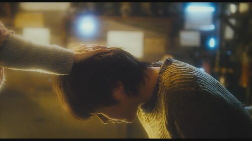 《狼少年》里男主像狗狗一样求女主摸头的梗↓