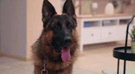 男主藏起来被警犬发现,结果男主让它别出声它就没出声,让它走它就走……